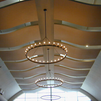 SONEX® GEOMETRIC ceiling clouds provide excellent sound absorption and design flexibility. Made with WILLTECTM foam, SONEX GEOMETRIC Clouds are offered in three shapes: square, circular and hexagonal. These acoustic ceiling clouds are designed to reduce echo in large open spaces, such as entries, open-plan offices and more.